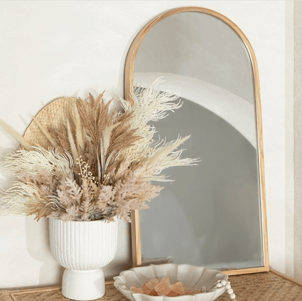 There are a number of places in the home that a beautiful vase of faux flowers looks amazing, but today we are sharing with you our absolute must-haves. We love the look of a large vase in the centre of the dining table with long stems to create a beautiful wow factor and centrepiece in the space. You can also add a vase of dried or faux flowers to your coffee table or bedside table for a styled look. To create a beautiful vignette on your kitchen bench we recommend grabbing a tray or chopping board and placing a beautiful bunch of faux flowers in a vase paired with a bowl of fruit and a beautiful smelling candle.